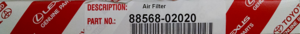 2002-2008 Toyota - Cabin Air Filter - Toyota (88568-02020)